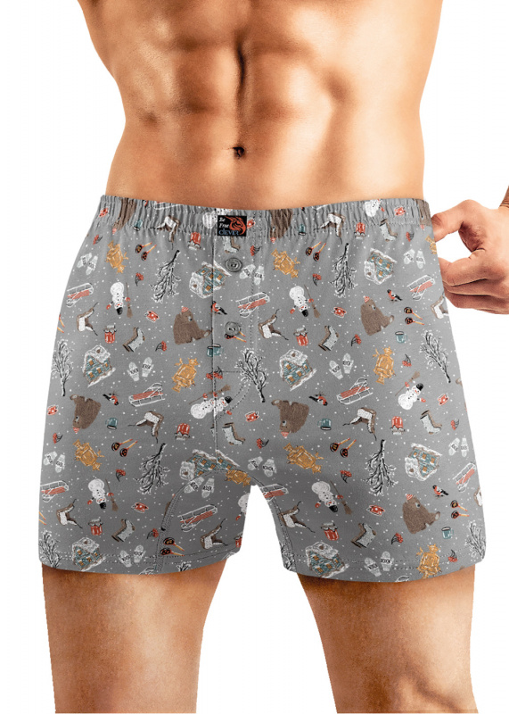 Боксеры комфортной посадки выполнены из оригинального полотна в авторскую набивку. Трусы дополнены пуговицами и жаккардовым логотипом.