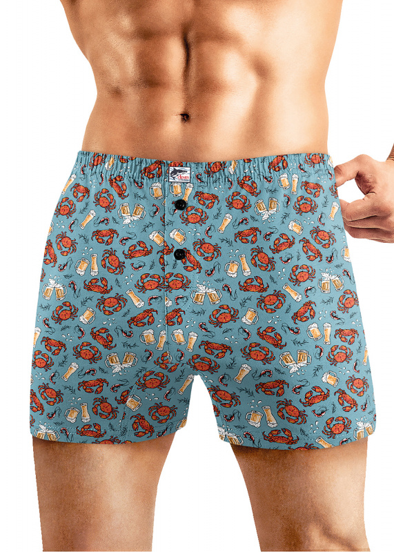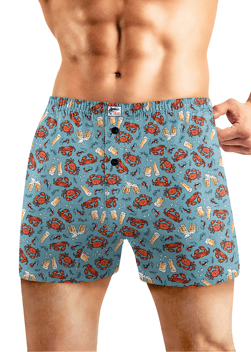 Боксеры комфортной посадки выполнены из оригинального полотна в дизайнерскую набивку Крабы. Трусы дополнены пуговицами и жаккардовым логотипом.