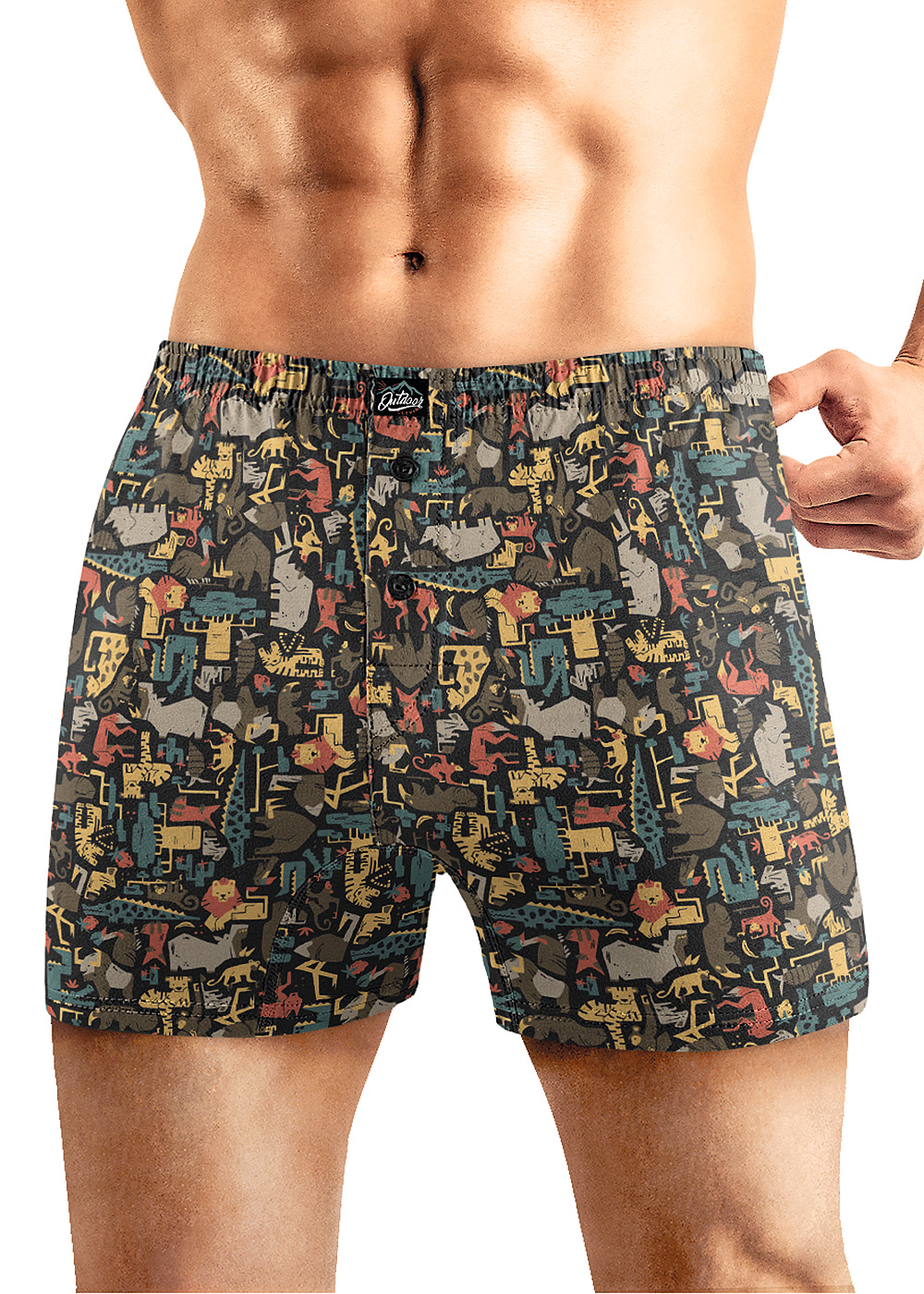 Боксеры комфортной посадки выполнены из оригинального полотна в дизайнерскую набивку Животные. Трусы дополнены пуговицами и жаккардовым логотипом.