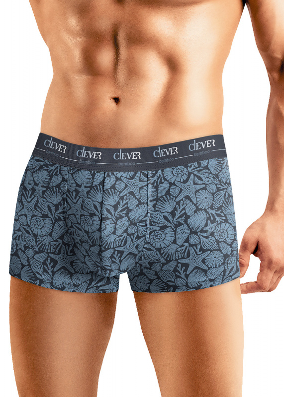 Шорты средней ддины комфортной посадки выполнены из оригинального полотна в дизайнерскую набивку Ракушки. Трусы дополнены фирменной резинкой..