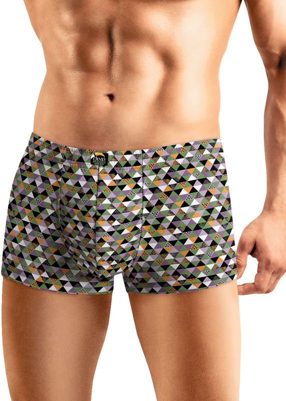 Шорты комфортной посадки выполнены из оригинального полотна в геометрическую набивку. Трусы дополнены жаккардовым логотипом.