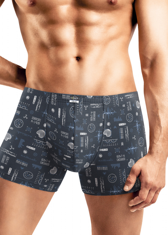 Шорты удлиненные комфортной посадки выполнены из оригинального полотна в мелкую графику. Трусы дополнены фирменным жаккардовым логотипом.