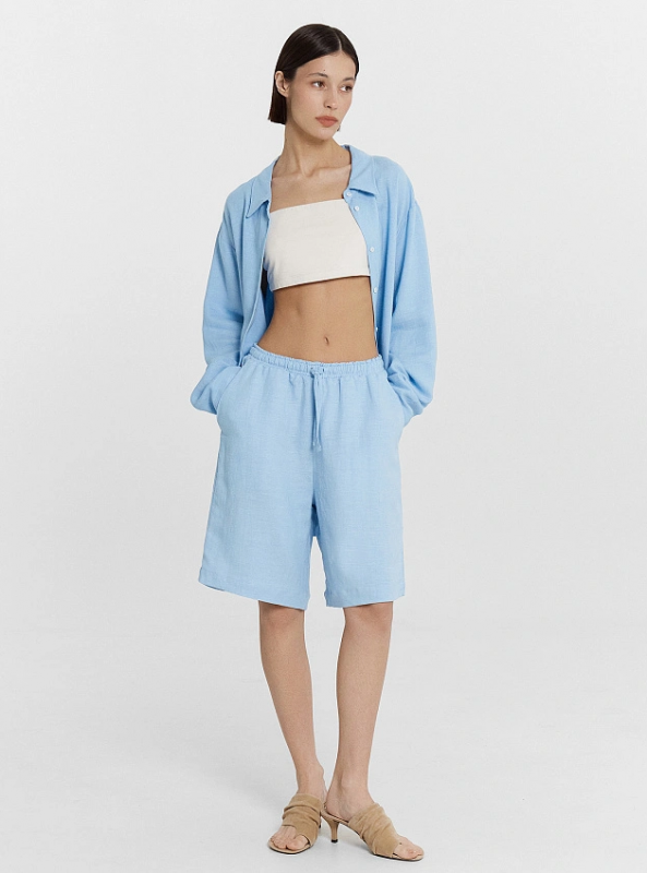 Свободный силуэт и натуральный материал обеспечивают удобную посадку и приятные ощущения в жаркую погоду Эластичный пояс на кулиске позволяет регулировать посадку, а боковые карманы-хулиганы добавляют практичности и нотку расслабленного, непринужденного стиля.