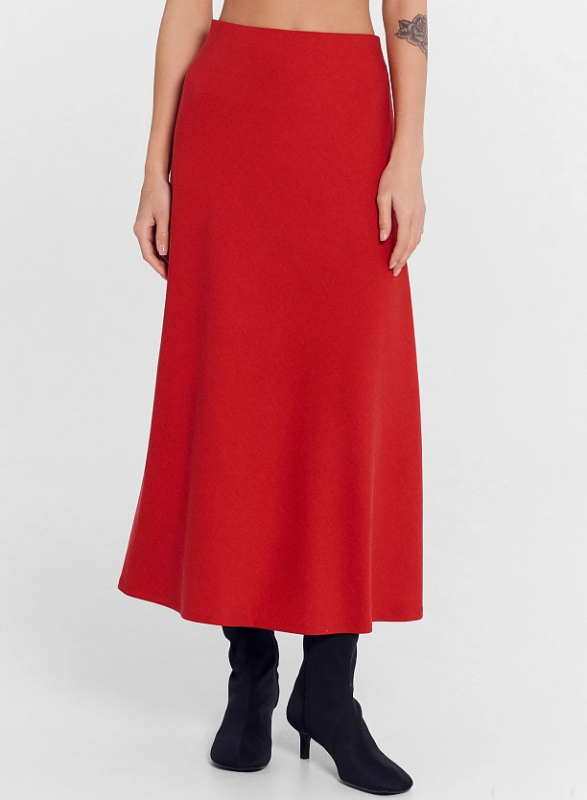 Шикарная однотонная женская юбка из премиального полотна. Материал приятен на ощупь, имитирует нежность и блеск шелка, дарит прохладу в жару и согревает в холод, универсален как для лета, так для зимы и демисезона. Хорошо пропускает воздух и впитывает влагу, дарит ощущения свежести и чистоты. Модель красиво драпируется, мягко облегает силуэт, не стесняет движений и практически не мнётся. Эта юбка миди — элегантный и стильный вариант одежды для тех, кто ценит комфорт и женственность. Модель имеет форму А-силуэта, что придает ей изящество и легкость, она плавно расширяется к низу. Такой фасон украшает и смотрится очень гармонично. Длина юбки ниже колена, удачно подчеркивает силуэт. Пояс цельнокроеный с жаккардовой эластичной тесьмой внутри гарантирует комфортную посадку.